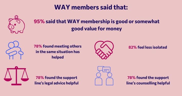 "WAY has been a lifeline. I had no friends that had any idea how I felt until I joined WAY. Losing your partner is the most devastating experience and finding people who just get it has been incredibly helpful and the support has been amazing."