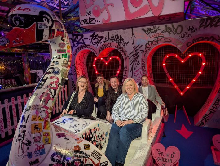 Saturday’s first event was a trip to an adult-only crazy golf venue – Golf Fang in Finnieston, just minutes from the city centre. We played 18 crazy holes of crazy golf which featured a hamster cage, a campervan from Breaking Bad, a tunnel of love (with a decorated swan – very apt, as WAY’s logo is a swan!), a bouncy castle, a rave room and a Jeremy Kyle set (which was of course named The Wee Jimmy Kyle Show!). Golf Fang is decorated by graffiti artists from floor to ceiling and it is a quirky, impressive place with lots of light-hearted talking points. Following my (rather pitiful) attempt at crazy golf – I blame the delicious cocktail! – we then had lunch from their street food café.