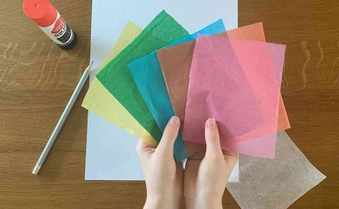 4. They can either rip the tissue paper into small pieces or yourself or the young person taking part could cut the paper into shapes and small pieces.