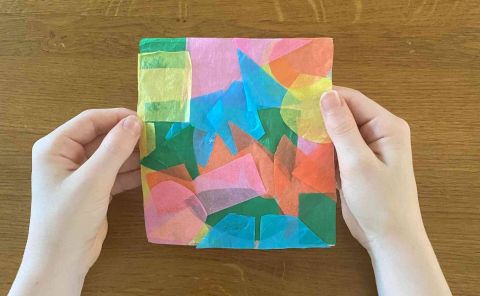 5. Now it’s time to create the collage! Simply take the glue and stick the tissue paper to the greaseproof paper. Suggest shapes within their art, like a heart or smiley face, or even a mosaic collage.