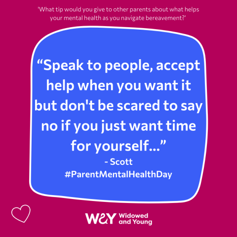 “Speak to people, accept help when you want it but don't be scared to say no if you just want time for yourself. Grief tires you out so have some ME time.” - Scott